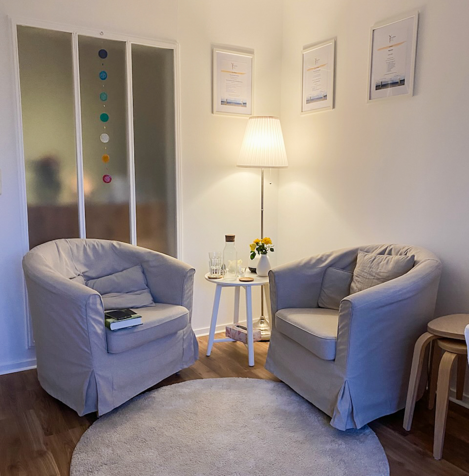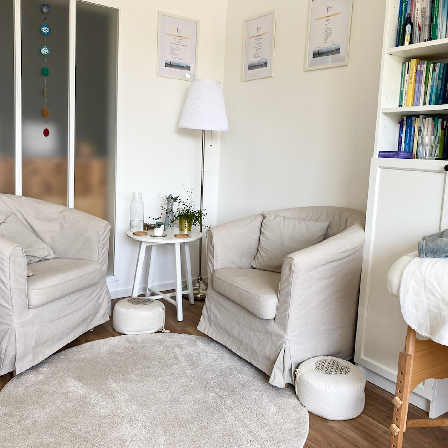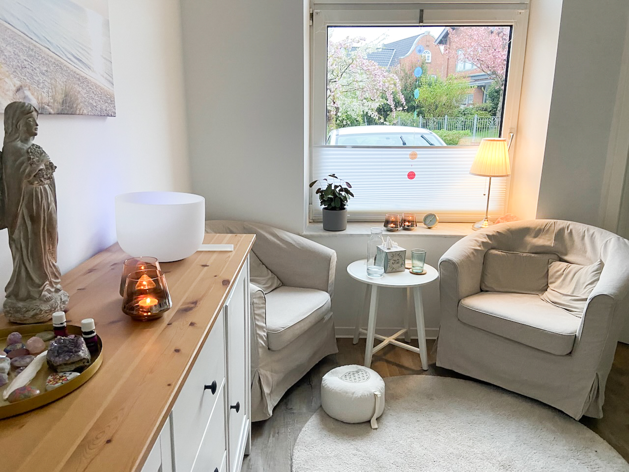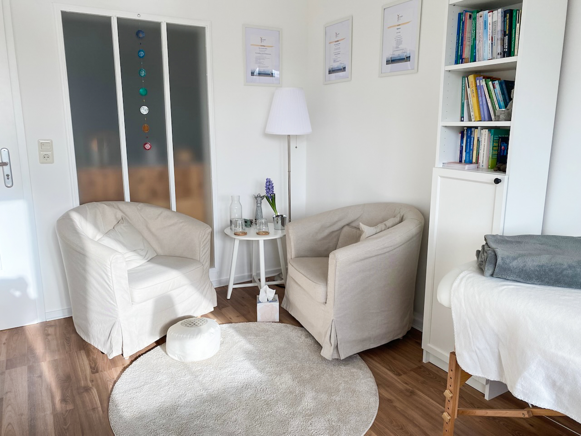In meinem schönen hellen Raum freue ich mich auf euch für Hypnosen, Beratung und Coachings.